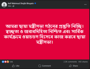 আসিফ মাহমুদের ‘ছায়া মন্ত্রিসভা’র পোস্ট: উদ্দেশ্য কী?