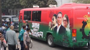 হযরত শাহজালাল বিমানবন্দর থেকে বের হয়ে লাল-সবুজ বাসে করে একটি ৩০০ ফিট এলাকায় আয়োজিত গণসংবর্ধনাস্থলের দিকে যাচ্ছেন বিএনপির ভারপ্রাপ্ত চেয়ারম্যান তারেক রহমান। বৃহস্পতিবার সকালে হযরত শাহজালাল আন্তর্জাতিক বিমানবন্দরে অবতরণের পর দলীয় ও পরিবারের সদস্যদের সঙ্গে সাক্ষাৎ ও ভ্রমণের আনুষ্ঠানিকতা সেরে তিনি গণসংবর্ধনাস্থলের দিকে রওনা হন। তার সঙ্গে রয়েছেন সফরসঙ্গী ও দলের সিনিয়র নেতারা।
