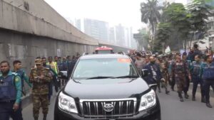 তারেকের গাড়ি বহর বিমানবন্দর থেকে সংবর্ধনা মঞ্চের দিকে যাবার পথে তার বাসকে ঘিরে কঠোর নিরাপত্তা দেওয়া হচ্ছে। সেনা, পুলিশসহ আইনশৃঙ্খলা বাহিনীর গাড়ি সামনে-পেছনে রয়েছে। দুই পাশে হেঁটে হেঁটে নিরাপত্তা বাহিনীর সদস্যরা চলছেন। গাড়ি বহর চলছে ধীর গতিতে। নিরাপত্তা বাহিনীর সদস্যরা চারপাশে নজর রাখার পাশাপাশি সড়কের দুই পাশে থাকা কর্মী সমর্থকদের গাড়ি বহর থেকে দূরে রাখছেন।