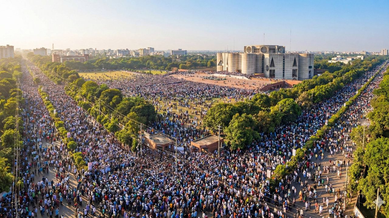 জানাজায় প্রধান উপদেষ্টা মুহাম্মদ ইউনূসের বাম পাশে দাঁড়ান তারেক রহমান, তারপরে এনসিপি আহ্বায়ক নাহিদ ইসলাম, বিএনপি মহাসচিব মির্জা ফখরুল ইসলাম আলমগীর, জামায়াতে ইসলামীর সেক্রেটারি জেনারেল মিয়া গোলাম পরওয়ার এবং তারপরে দাঁড়ান নির্বাচন বিশেষজ্ঞ বদিউল আলম মজুমদার।