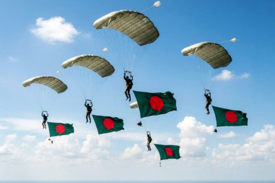 মঙ্গলবার আন্তঃবাহিনী জনসংযোগ পরিদপ্তরের (আইএসপিআর) এক সংবাদ বিজ্ঞপ্তিতে এ তথ্য জানানো হয়। বিজ্ঞপ্তিতে বলা হয়, বাংলাদেশ সশস্ত্র বাহিনীর সাহসী ও দক্ষ স্কাইডাইভারদের অংশগ্রহণে, যাদের মধ্যে আশিক চৌধুরীসহ (বিডা) প্রশিক্ষিত প্যারাট্রুপাররা ছিলেন, এই ব্যতিক্রমী অভিযানে আকাশে ভেসে ওঠে লাল-সবুজের ৫৪টি পতাকা। পুরো উদ্যোগটি পরিকল্পনা ও বাস্তবায়ন করে আর্মড ফোর্সেস ডিভিশন।