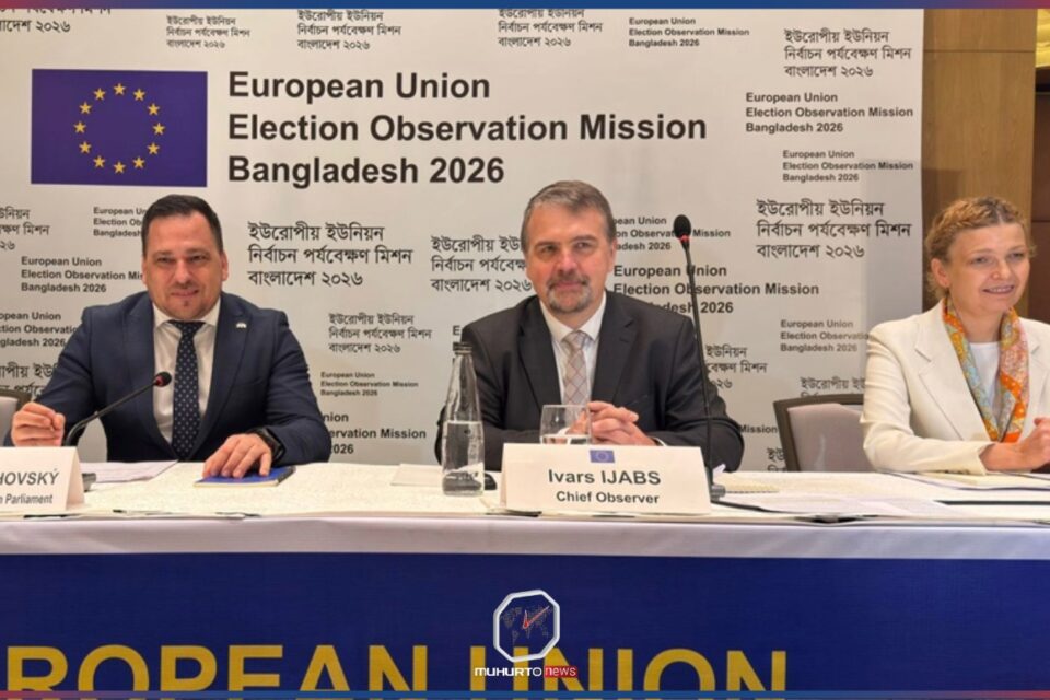 শনিবার রাজধানীর একটি হোটেলে প্রেস ব্রিফিংয়ে ১২ ফেব্রুয়ারির সংসদ নির্বাচন নিয়ে ইউরোপীয় ইউনিয়ন নির্বাচন পর্যবেক্ষণ মিশনের প্রাথমিক বিবৃতি উপস্থাপন করেন ইউরোপীয় পার্লামেন্টের সদস্য ও ইইউ ইওএমের প্রধান পর্যবেক্ষক ইভার্স ইজাবস।